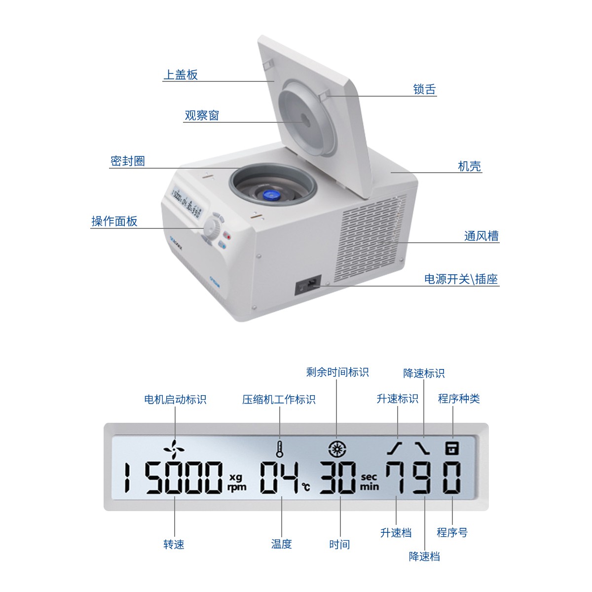 · 靜態(tài)制冷,離心機蓋門關(guān)閉狀態(tài)下,只要設(shè)定溫度低于環(huán)境溫度,壓縮機即自動自動制冷